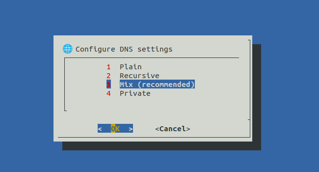 Auswahl des DNS Modus. Siehe: [usableprivacy/config](https://github.com/usableprivacy/config#up-box-4-configuration-tool)